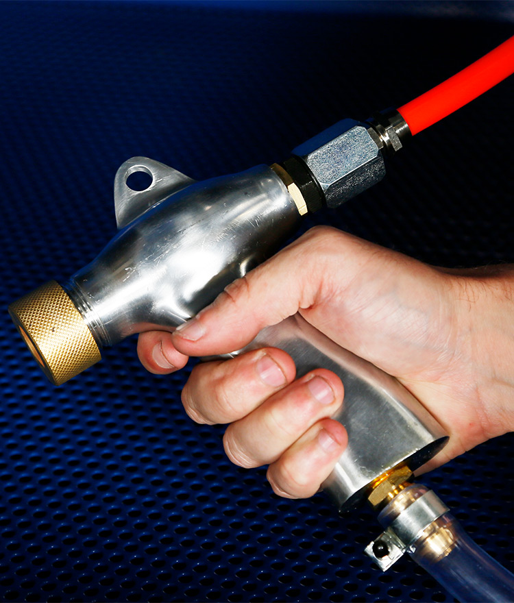 - Foot-pedal-controlled siphon blast gun helps to reduce operator hand fatigue