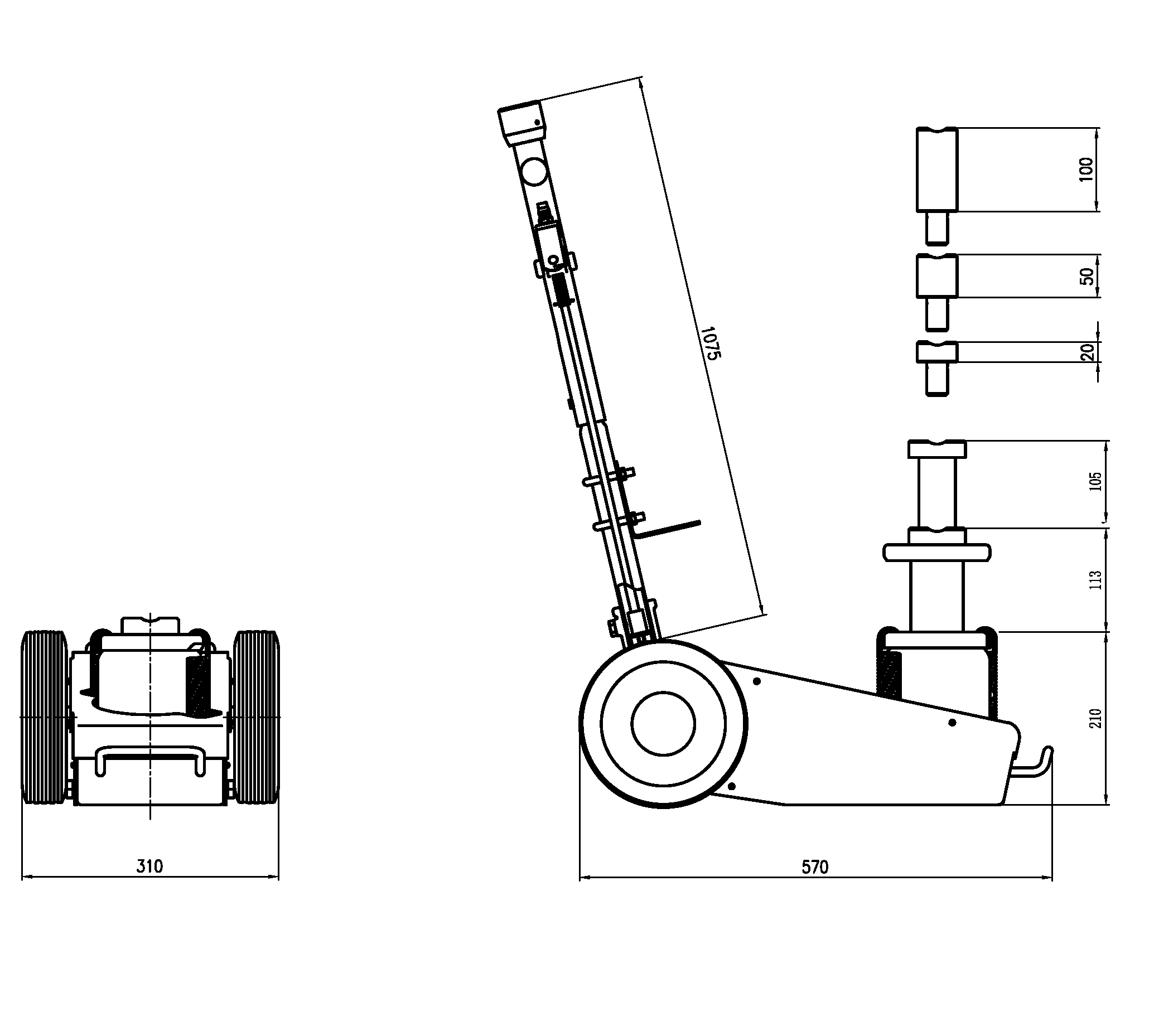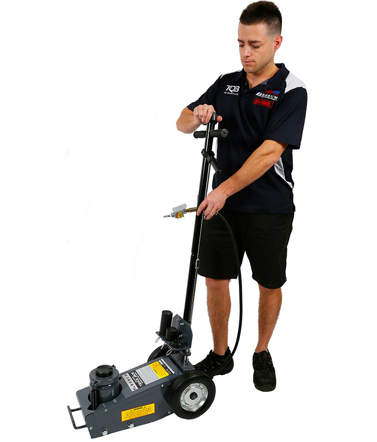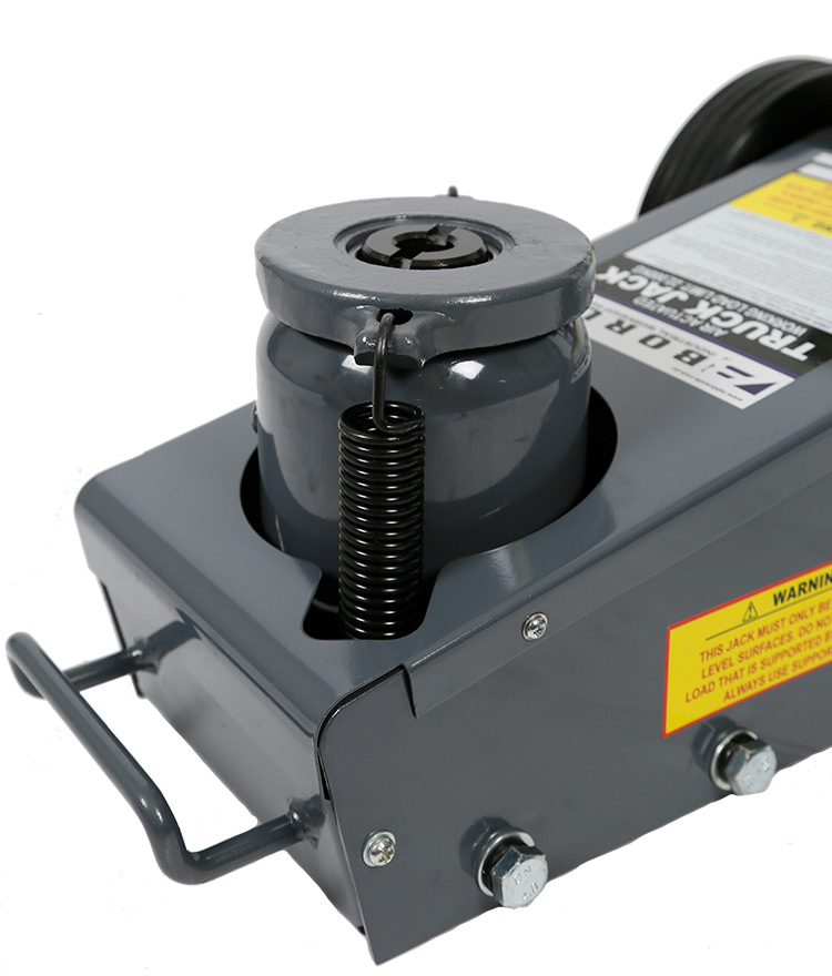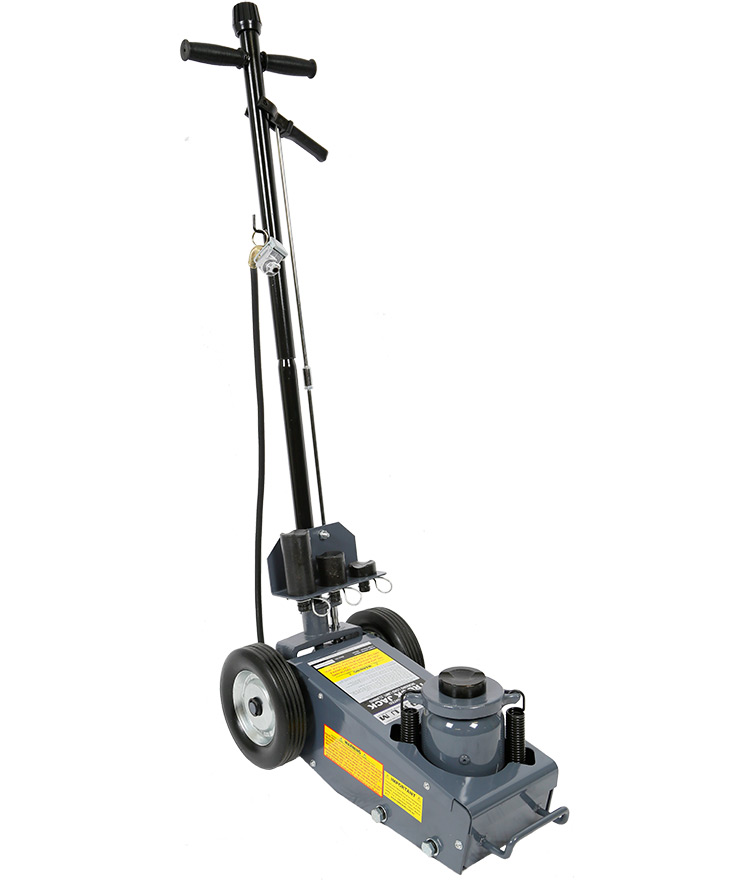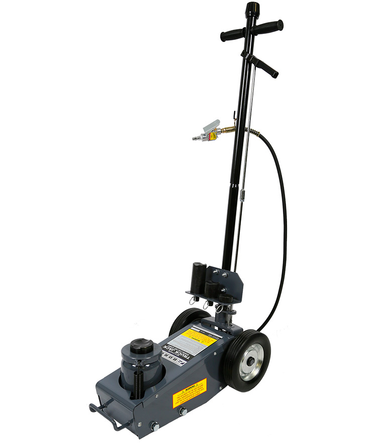 This Borum "Industrial Quality" pneumatic heavy-duty 22,000kg Air Actuated Hydraulic Quick Lift Truck Jack has a powerful super duty air motor to easily and reliably lift heavy vehicle loads. This super-tough Truck Jack delivers enough air/hydraulic power to lift up to 22,000kg and is ideal for servicing trucks and farm equipment. Other features include 200mm diameter wheels for easy maneuverability, four saddle adaptors and a cast iron base with formed steel housing for added durability.