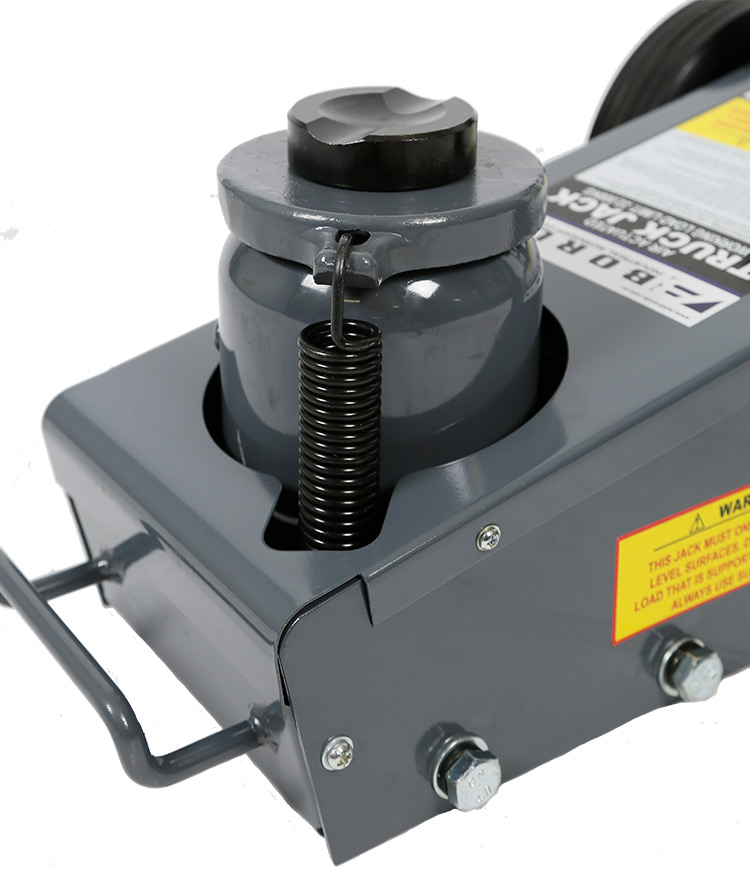 The alloy hardened piston-ram is treated and polished to resist thinning over time and uses an advanced Y-type polyurethane sealing ring system that keeps the jack solidly raised in the desired position, preventing the load from falling slowly. Fitted with a safety overload valve for extra protection, the safety valve is installed between the pump and high-pressure check valve in the barrel/lift ram assembly. When attempting to raise a load greater than the jack's capacity, the safety valve opens on each pump stroke and diverts any further oil back to the reservoir thus preventing the raising of the load.
