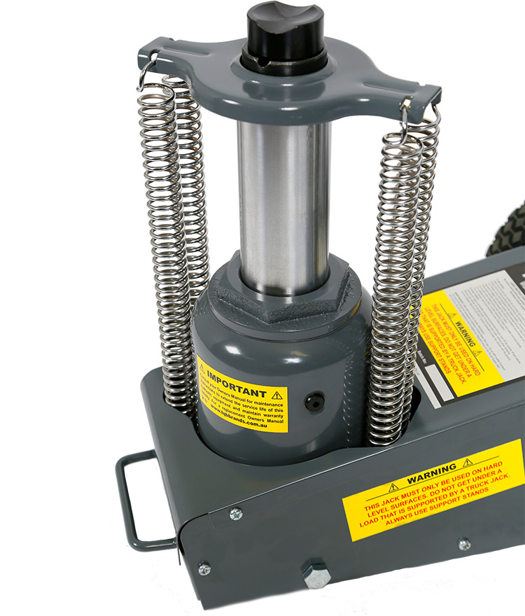 Fitted with a safety overload valve for extra protection, the safety valve is installed between the pump and high-pressure check valve in the barrel/lift ram assembly. When attempting to raise a load greater than the jack's capacity, the safety valve opens on each pump stroke and diverts any further oil back to the reservoir thus preventing the raising of the load. (Previous models include product code/s; 2829)