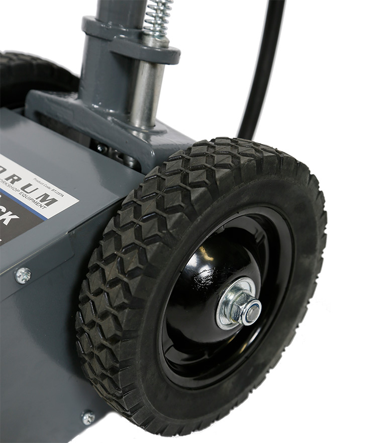 This "Borum Industrial" pneumatic heavy-duty 35,000kg Air Actuated Hydraulic Truck Jack has a powerful air motor to lift heavy loads. The efficient quick lift system is designed to ensure the lifting ram comes in contact with the load faster. The compact design easily fits between dual tandem axles. Ideal for lifting axles, farm vehicles, heavy-duty machinery, industrial equipment and more. This Borum Air/Hydraulic Truck Jack utilises compressed air to activate a booster cylinder, to move hydraulic oil within the cylinder up & down. It adopts a industrial hydraulic design combination of compressed air and hydraulic pressure, to create, strong jacking capacity and low lifting clearance in one jack. The two wheel floor support design lets you really get under your loads with a 255mm minimum height. Designed to lift buses and other large, low-clearance vehicles with maximum stability. Includes height adaptors.