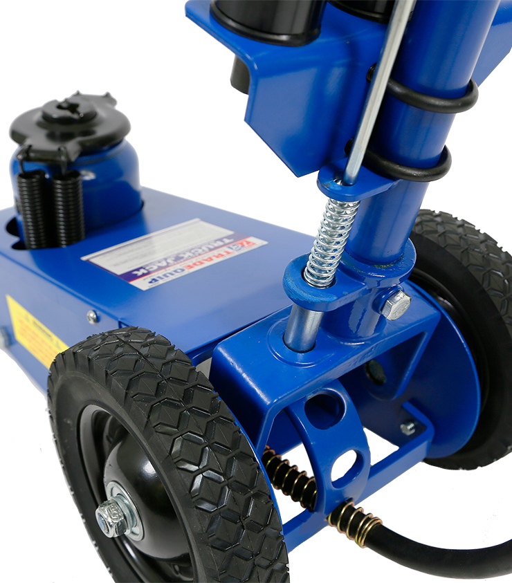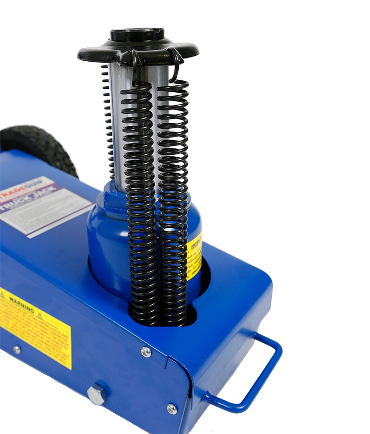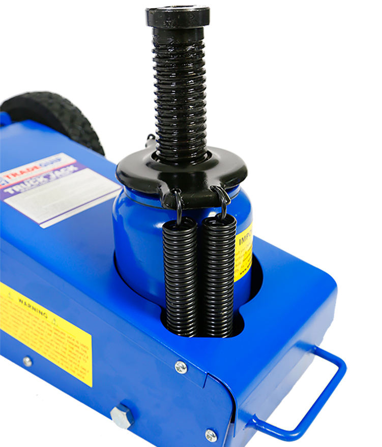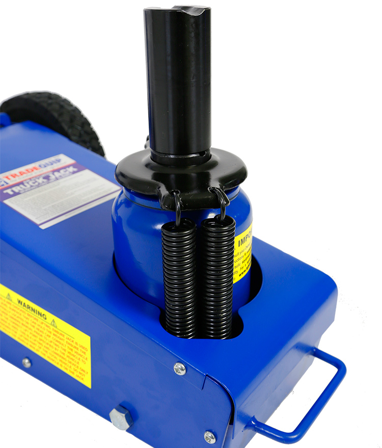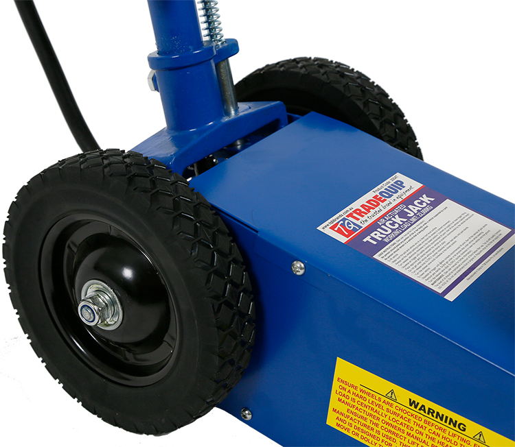 This TradeQuip "Made for the Trade" pneumatic heavy-duty 22,000kg Air Actuated Hydraulic Quick Lift Truck Jack has a powerful air motor to lift heavy loads. The efficient quick lift system is designed to ensure the lifting ram comes in contact with the load faster. The compact design easily fits between dual tandem axles. Ideal for lifting axles, farm vehicles, heavy-duty machinery, industrial equipment and more. Includes height adaptors.