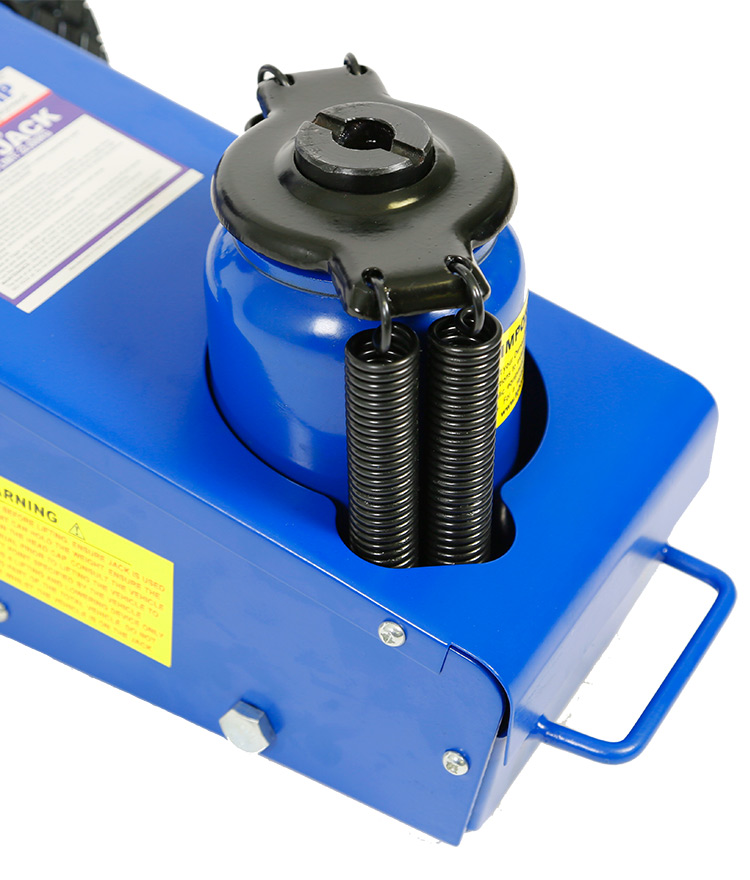Fitted with a safety overload valve for extra protection, the safety valve is installed between the pump and high-pressure check valve in the barrel/lift ram assembly. When attempting to raise a load greater than the jack's capacity, the safety valve opens on each pump stroke and diverts any further oil back to the reservoir thus preventing the raising of the load.