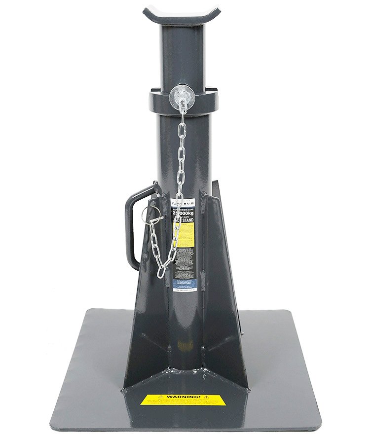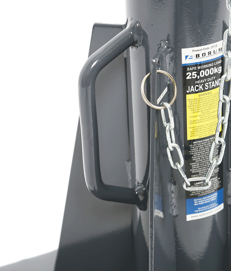The BORUM Industrial Ultra Heavy Duty Jack Stand is a reinforced pin style jack stand with industrial quality design and support bracing system to sustain heavy loads up to 25,000kg. Adjusts to match the job with a 680mm minimum lift height and 968mm maximum lift height !! Featuring an Ultra Heavy-Duty Industrial design, these tough stands are ideal for construction, farm, truck, bus, earth moving equipment and fleet vehicle maintenance workshop use.