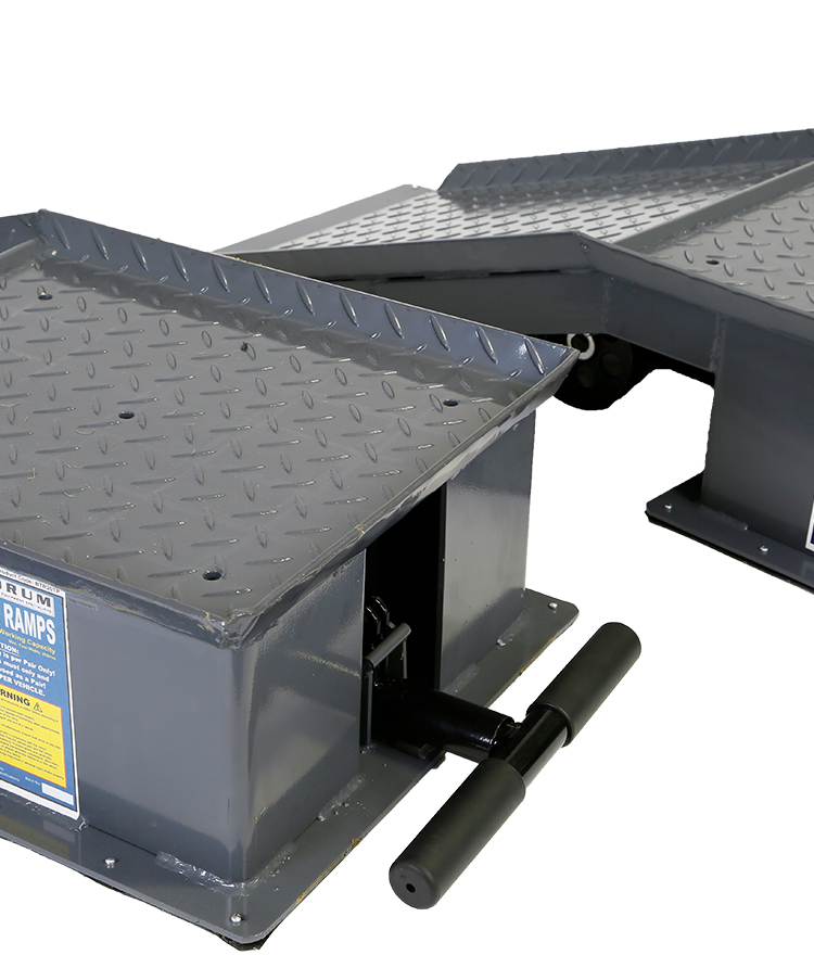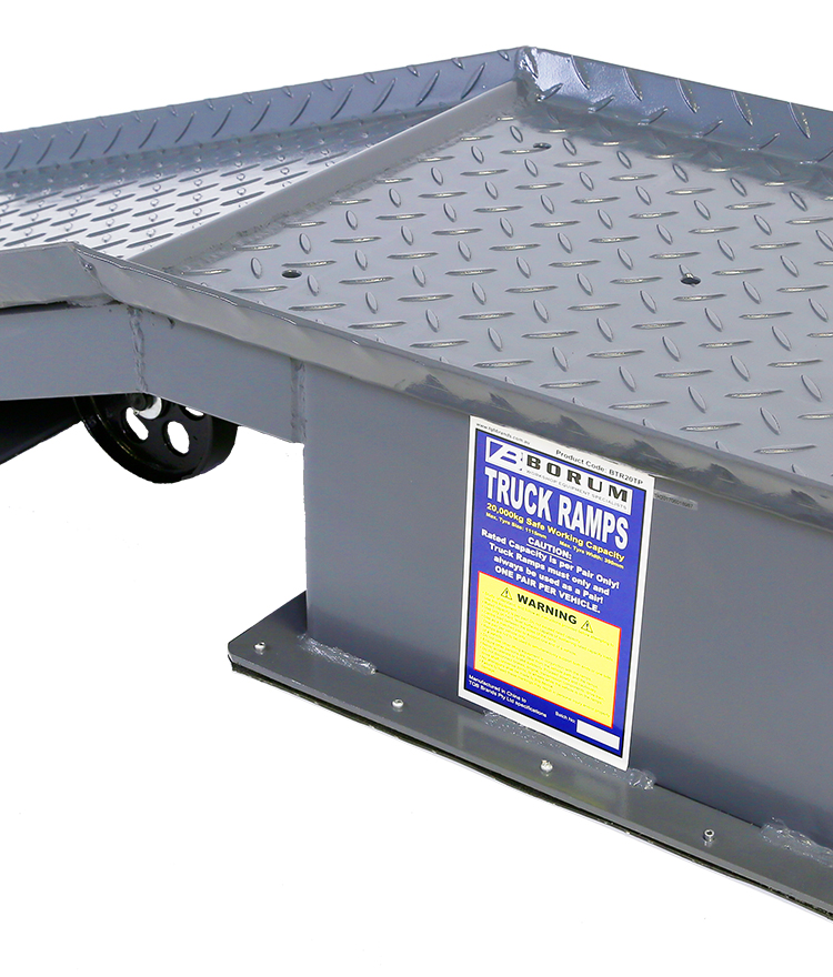 The Borum Industrial Portable Truck Ramp Set is designed for maintenance and servicing work on trucks, buses and forklifts allowing easy and safe access to the undercarriage of vehicles. Easy and safe to use with a 700mm incline and 500mm of horizontal deck with safety flange to prevent fork truck from rolling off the deck. These robust ramps weigh just under 80kg each and are fitted with a unique wheel mechanism which raises and lowers for easy moving. These 463mm wide steel truck ramps feature non-skid bases and non-slip traction plates to keep the ramps and their load in place. Handle retracts for out of the way safety and storage. Sold in pairs. (Previous models include product code/s; 1150)