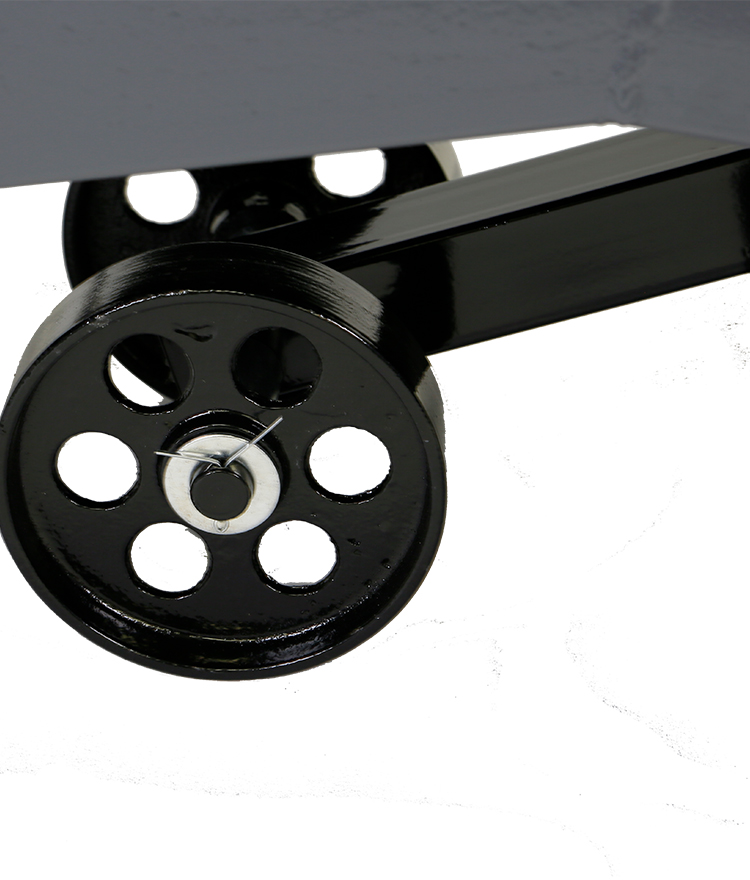 - Pull the handle out, rotate it up to lock the wheels down for very easy maneuverability around workshop