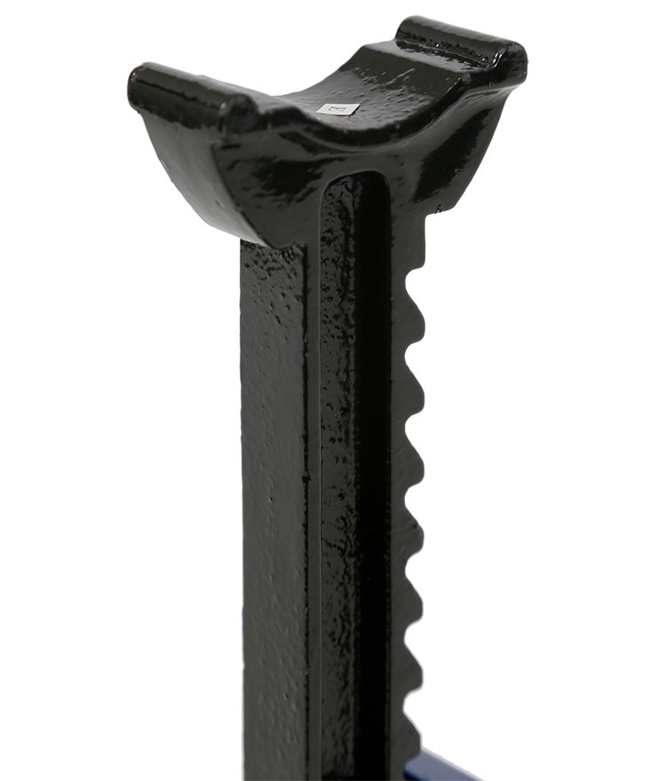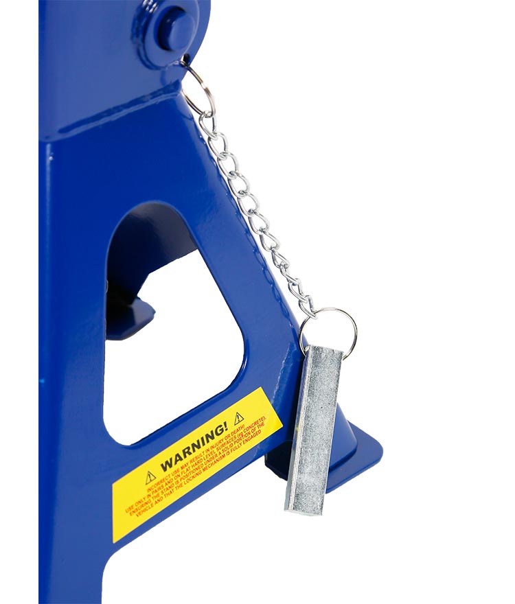 TradeQuip "Made for the Trade" Adjustable Jack Stands are ideally suited to the professional trade workshop. These ratchet type axle stands are designed with a cast iron support post, tough steel plate welded base and deep saddle for positive location under the vehicle. The cast iron post is equipped with angled teeth and a double-lock safety pin to prevent accidental release of load - the more weight applied, the tighter the post is locked.