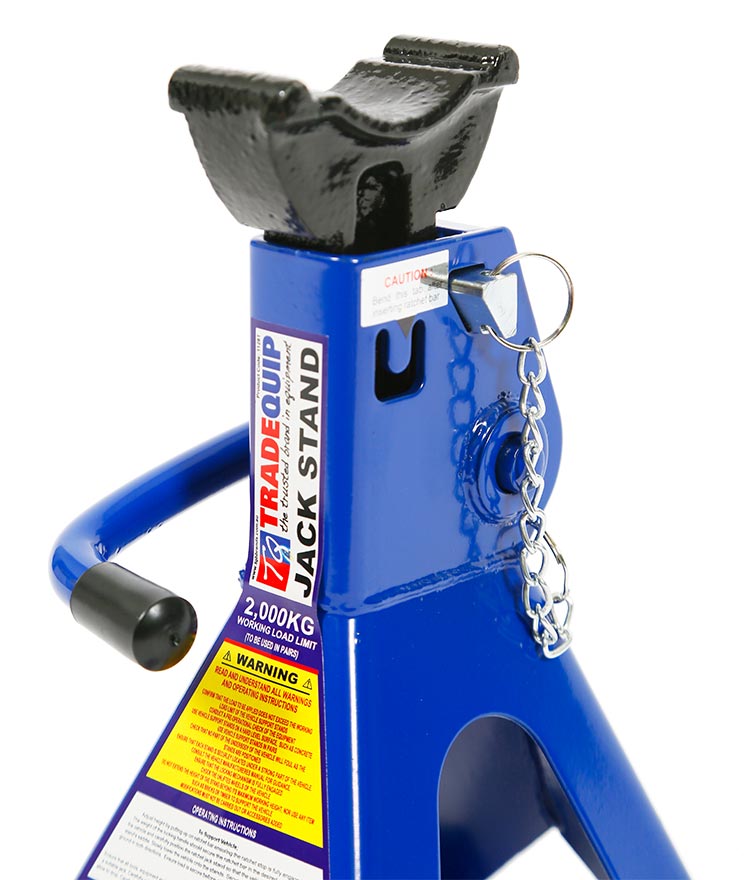 TradeQuip jack stands are excellently designed to ensure you maximum safety. They have wide feet providing a strong base and a unique locking pin so there is no risk of them slipping.