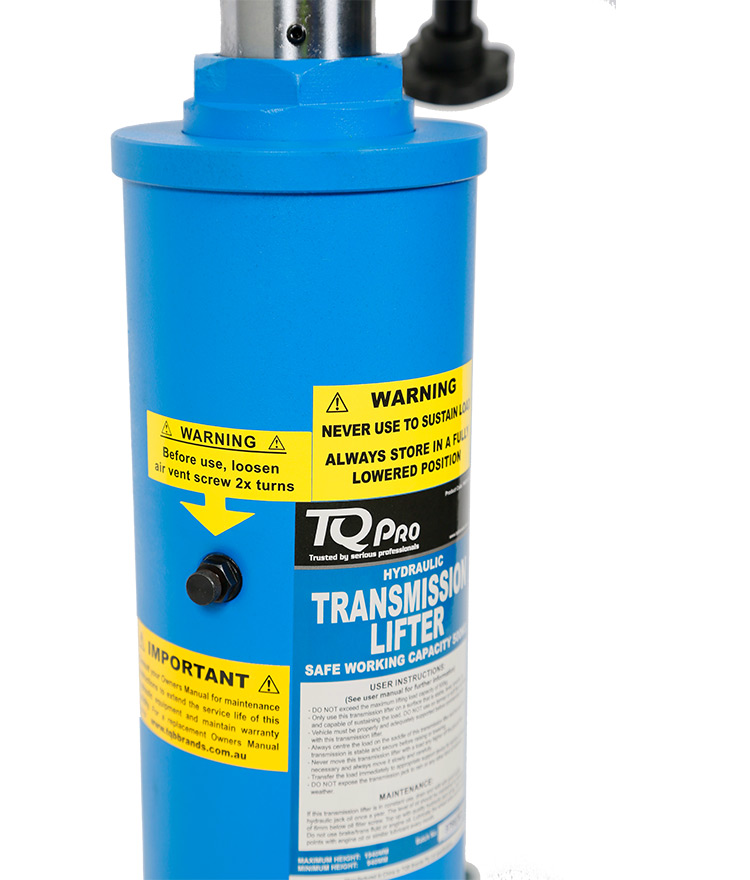 This TQ Pro "Latest Applied Technologies" 2-Stage Hydraulic Telescopic Transmission Lifter offers a wide range of versatility designed to help increase workshop productivity. Designed for lifting passenger car transmissions, the universal mounting lifting platform provides a wide four way tilt range and the wide base is enhanced by four premium nylon swivel castors for safer maneuvering around the workshop. The convenient rapid lift without load and slow descent with load is controlled via the foot operated pump and release valve to keep the mechanic’s hands free during use. The height and lifting platform adjustability of this telescopic Transmission Lifter makes it great for any transmission installation or removal. CNC technology, ensures the chassis and frame constructed of superior-grade steel is manufactured to exacting standards that meet TQ Pro expectations for professional quality and durability.