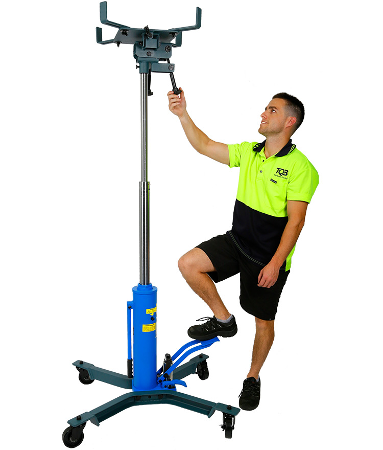 The TQ Pro Telescopic Transmission Lifter is the perfect choice for lifting passenger car transmissions. The base design makes this transmission lifter easy to move whilst maintaining stability under most vehicle hoists, and an oversized cradle increases contact area with the load for a sure hold on most transmissions.