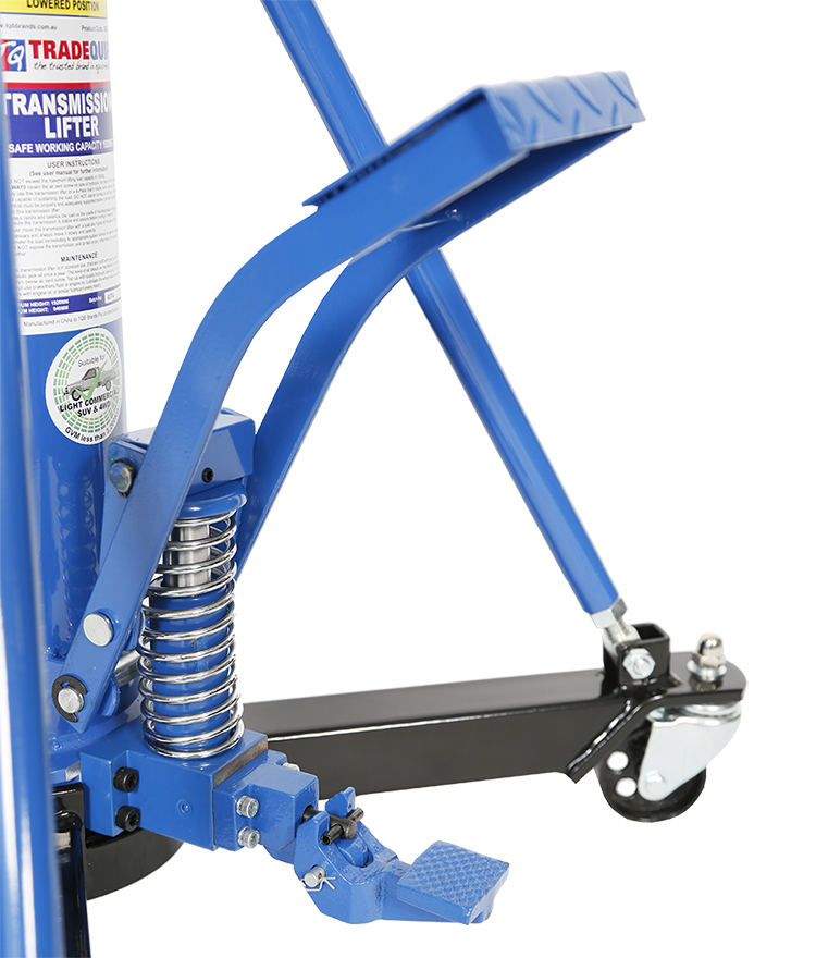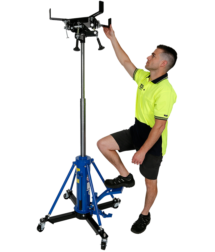 Designed for the removal, installation and transportation (in the lowered position) of passenger vehicle transmissions that are raised by an in-ground or above-ground lift.