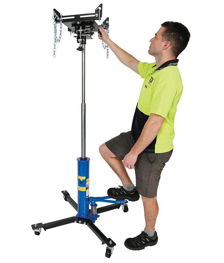 Designed for the removal, installation and transportation (in the lowered position) of passenger vehicle transmissions that are raised by an in-ground or above-ground lift.