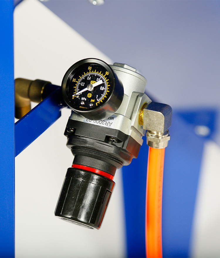 - Foot-pedal-controlled siphon blast gun helps to reduce operator hand fatigue