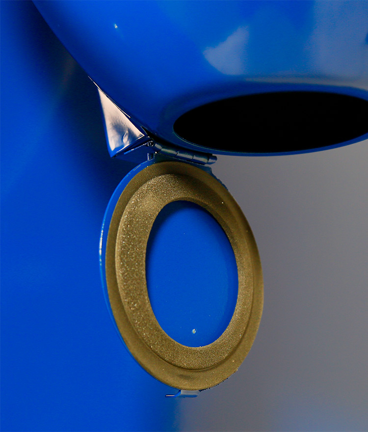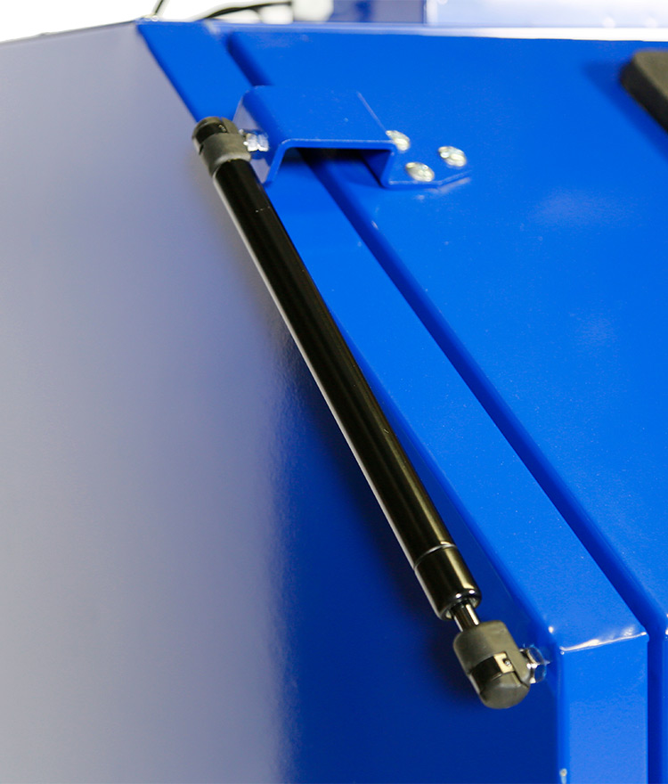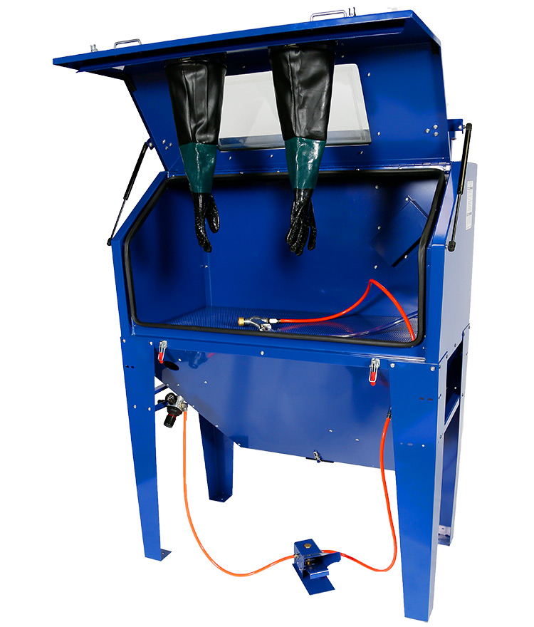- Oversized hinged top door opening allows the operator to easily load a wide variety of items into the blast cabinet