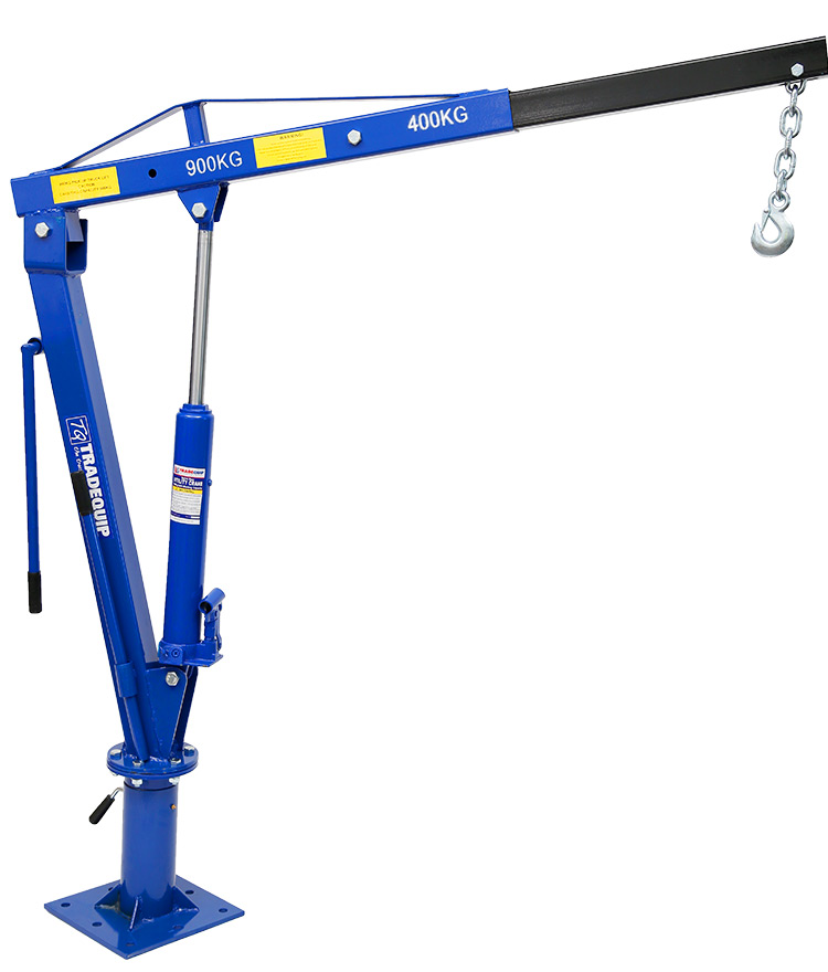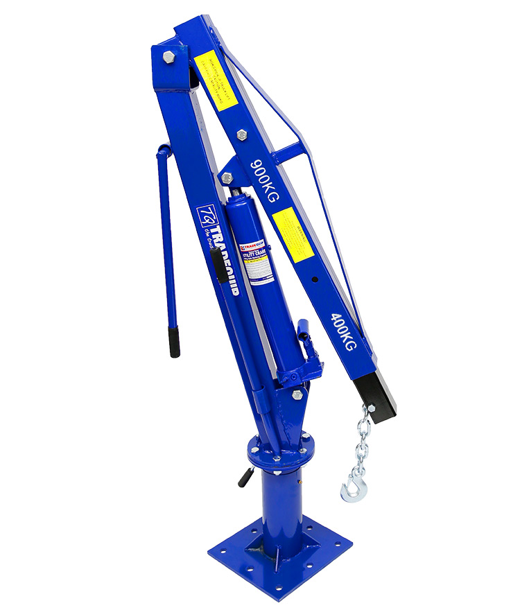 The TradeQuip "Made for the Trade" steel Utility Crane effortlessly lifts items from the ground to ute/truck tray height, then rotates them into the cargo area. The telescopic boom design with manual hydraulic hand pump pivots the boom up and down and swivels 360° for maximum accessibility. Get extra lift where you need it most with this TradeQuip Utility Crane that easily lifts loads to 900kg. The steel boom extends up to 1290mm and the base swivels to help you get the best angle when hoisting items onto your ute or truck bed. The pickup crane folds away when not in use. (Previous models include product code/s; 2069T)
