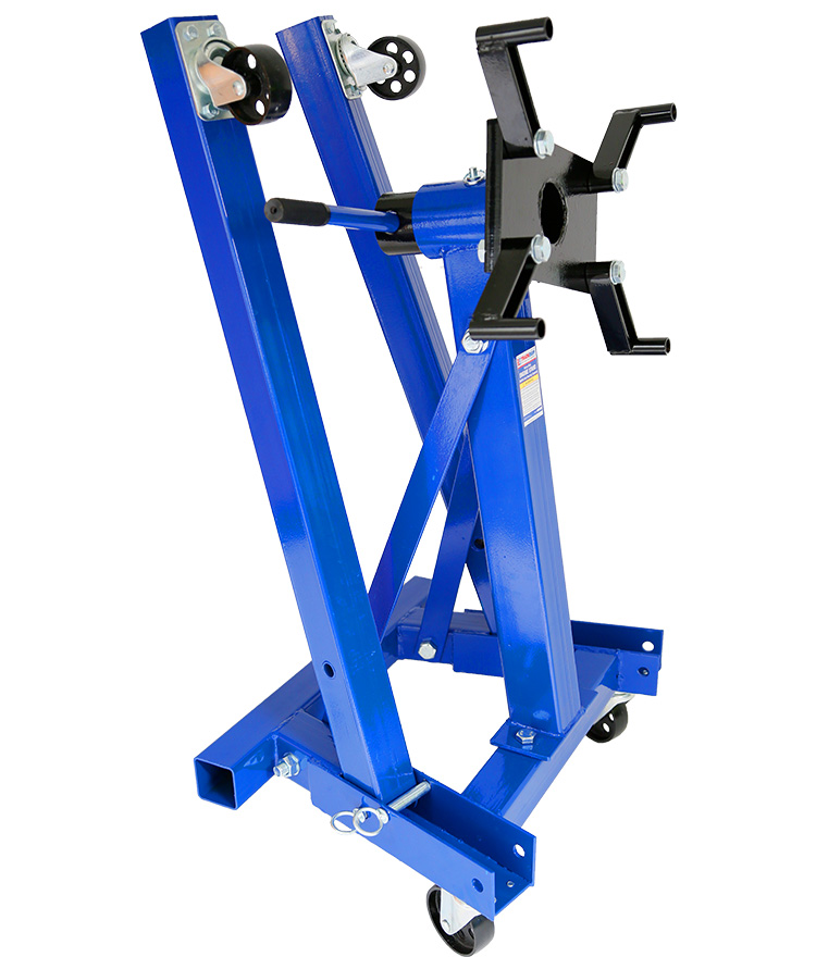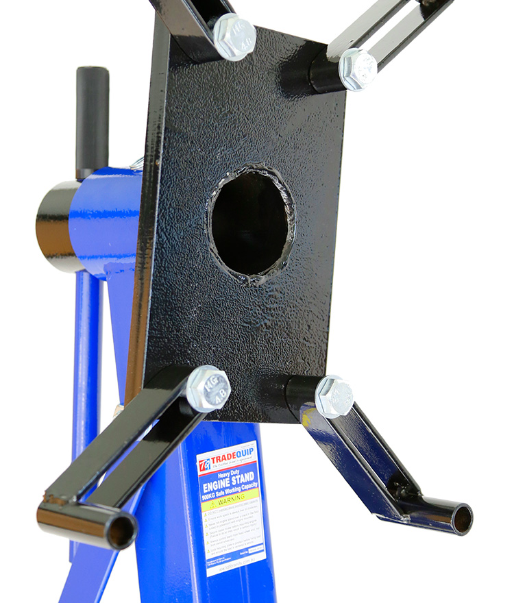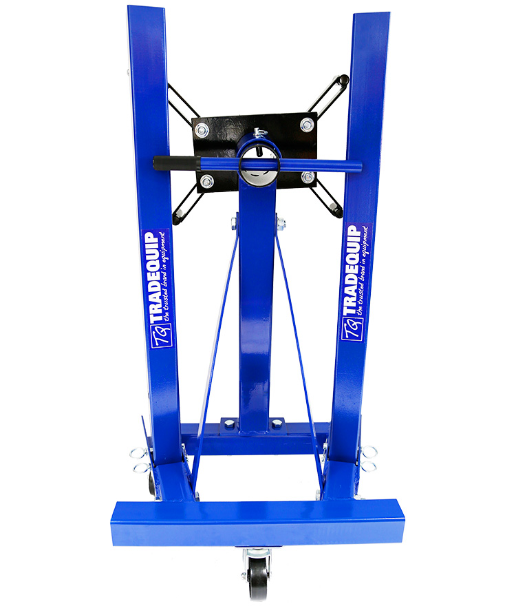 This TradeQuip "Made for the Trade" 900kg Engine Stand delivers extra strength and accessibility, making it essential for busy garages. Easily adapts to accommodate a variety of engine sizes. "H" shaped base for added stability and support. Adjustable mounting brackets for attachment to engine block. 360° rotating mount head with multi-locking positions. 5 steel swivel castors for easy maneuverability. Legs fold up for quick, convenient and easy storage. (Previous models include product code/s; 1192)