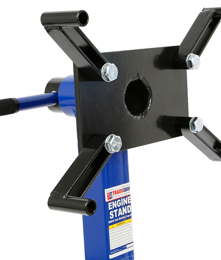 This TradeQuip "Made for the Trade" 680kg Engine Stand delivers extra strength and accessibility, making it essential for busy garages. Easily adapts to accommodate a variety of engine sizes. "U" shaped base for added stability and support. Adjustable mounting brackets for attachment to engine block. 360° rotating mount head with multi-locking positions. 4 Heavy Duty steel swivel castors for easy manueverability. Legs can be removed for quick, convenient and easy storage. (Previous models include product code/s; 1191)