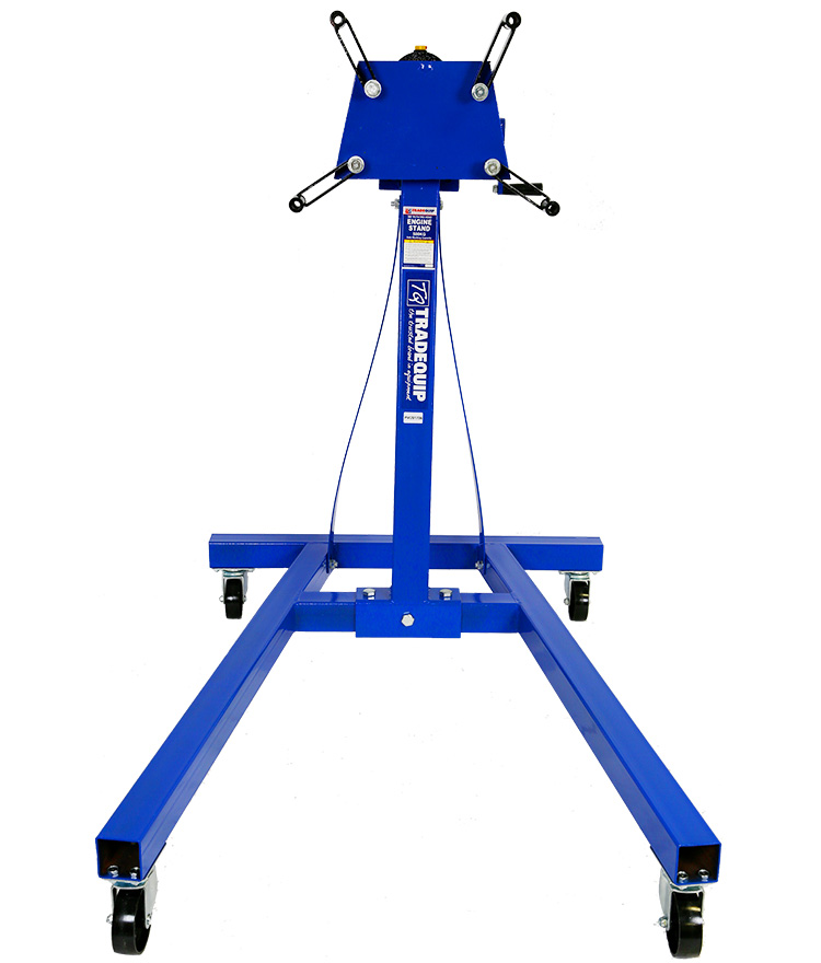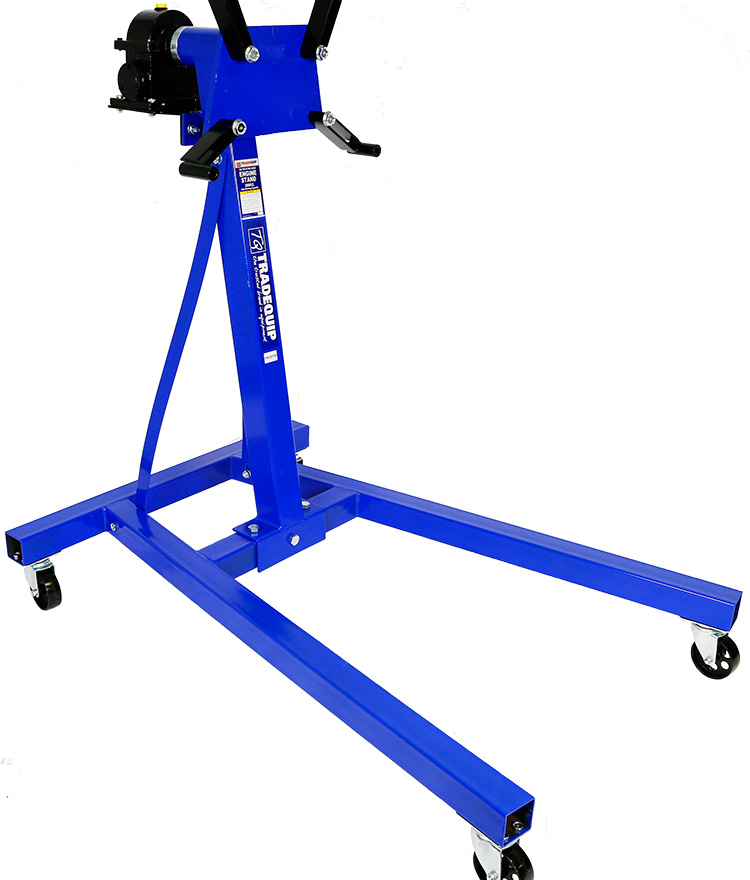 The TradeQuip "Made for the Trade" Revolving Engine Stand accepts a wide variety of engines and transmissions. The head easily rotates 360º via the 40:1 ratio gear box for convenient accessibility to all parts of the engine. Using an engine stand where the rotational movements of the stands can be safely controlled not only saves man hours by eliminating non-productive handling procedures, it meets with popular safe working practice and safety regulations to minimise the dangers of personal injuries (that result from the manual handling of heavy loads).