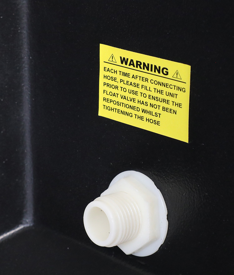 - Dual pour in refill water inlet and/or 3/4" hose fitting for automatic tap refill