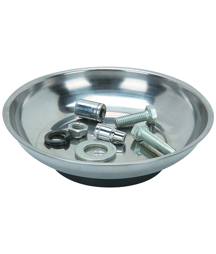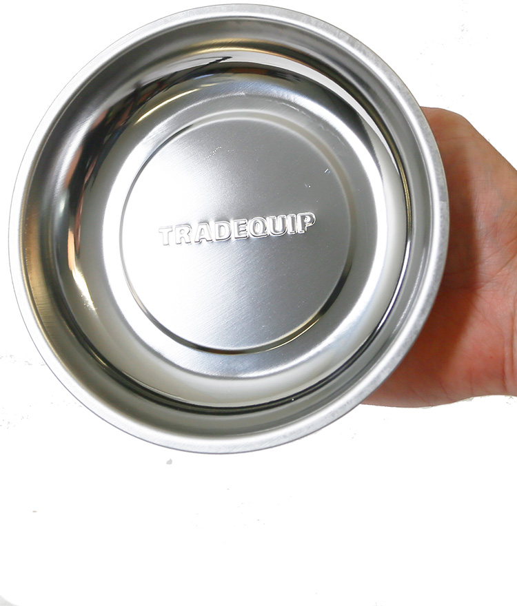The TradeQuip "Made for the Trade" Magnetic Parts Trays are handy to help make sure that you never have any leftover parts. A magnetic parts tray holds on to all the little bolts, screws, nuts and washers that can easily get lost. You’ve got them all in one place and within your reach at all times. You can even bump the tray and the strong magnet will hold on to them, keeping them in the tray and not all over the inside of your engine bay. The magnet is coated in a protective coating, so it won’t scratch the surface that you place it on. Sit them on any metal surface, even sideways or upside down, to safely contain small metal bits and pieces.