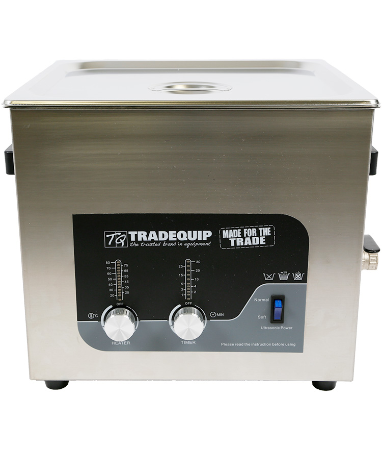 The TradeQuip "Made for the Trade" ultrasonic parts cleaner makes it easy to clean items like carbies, calipers, nuts & bolts, most small metal parts - even jewellery. Just fill the cleaner with water, mix in a desirable ultrasonic cleaning additive (sold separately), set the timer and walk away to get on with another job. The ultrasonic cleaner works with or without heat and provides deep cleaning using ultrasound technology and water. The adjustable temperature and timer gives you a variety of cleaning performance options.