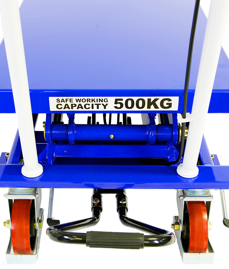 The "Made for the Trade" 6007T scissor lift table has a 500kg capacity and is fitted with wheels, designed with sealed bearings and polyurethane tyres, to ensure loads can be transported smoothly and precisely.
