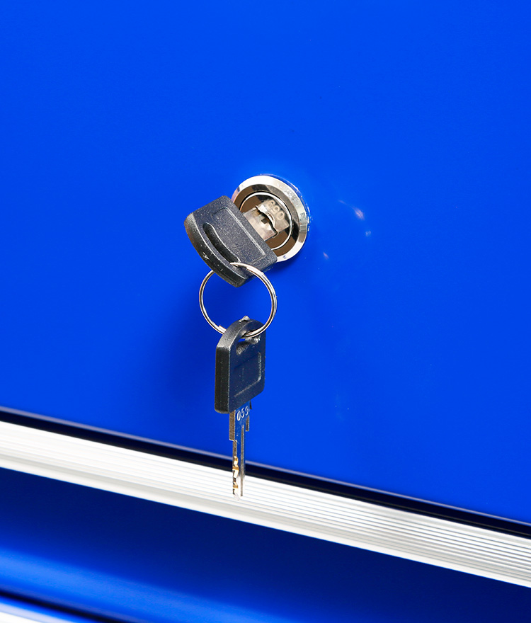 - Heavy gauge steel construction with lockable sliding top on smooth ball bearing runners.