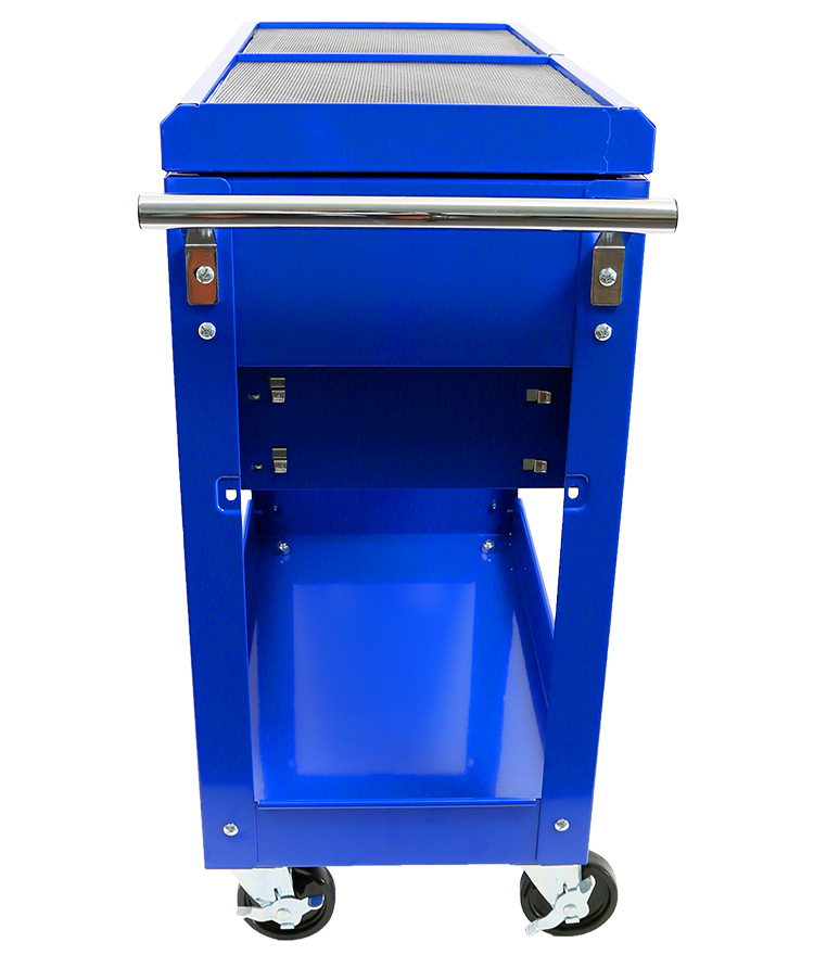 - Large bottom shelf clearance, tool box features cantilever and removable trays