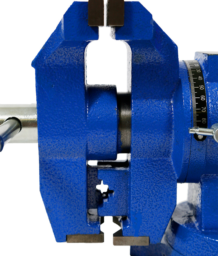 Constructed of ductile iron, the TradeQuip “Made for the Trade” Multi Purpose Bench Vice range is designed with rugged thick malleable cast body and precision machined jaws, ideal for medium duty work. With a swivel base, the vice body and jaw angle can be rotated to offer full flexibility for holding long and/or awkward working pieces. Our TradeQuip “Made for the Trade” Multi-Purpose Bench Vices do it all. Jaws rotate 360° for unlimited work piece positioning and clamping flat, as well as round stock (with the built-in pipe jaws). The 360° rotating head clamps material at any angle and the 90° left and right indexing offers quick set up as well as permanent pipe jaws and a v-jaw to hold round objects vertically.