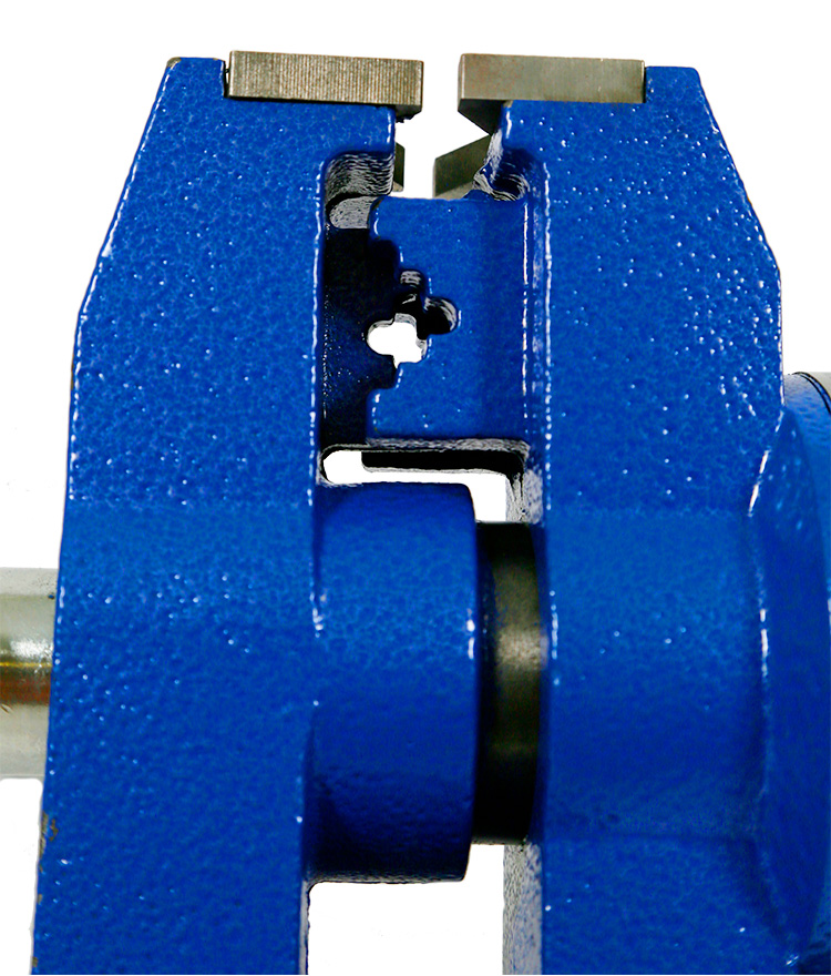 TradeQuip “Made for the Trade” Multi-Purpose Bench Vices are built for professional durability and dependability. These vices are constructed from 30,000psi malleable cast iron and come equipped with replaceable cross-grooved steel jaws to provide a strong grip and prevent workpiece slippage. The built-in cast iron pipe jaws are grooved for enhanced grip and allow for easy clamping of pipe and/or other rounded material. A large anvil work surface on the back of the vice is perfect for hammering and shaping metal pieces. The 360° swivel base with a 360° swivel head (with lock down) offers maximum versatility for clamping most workpiece lengths at any angle.