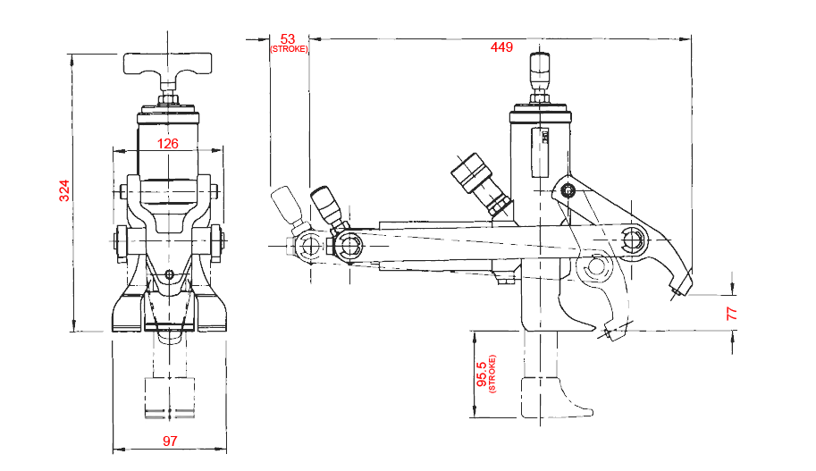 - Clamps to wheel rim & breaks bead simply with up to 5,000kg of force