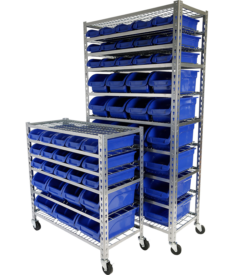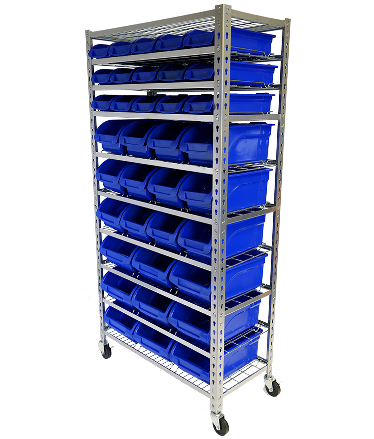 - Zinc plated wire shelving with bin locating guides