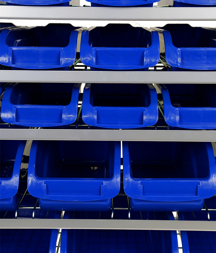 • 15 Parts Bins: 345x105x75mm  (3kg Load Capacity)