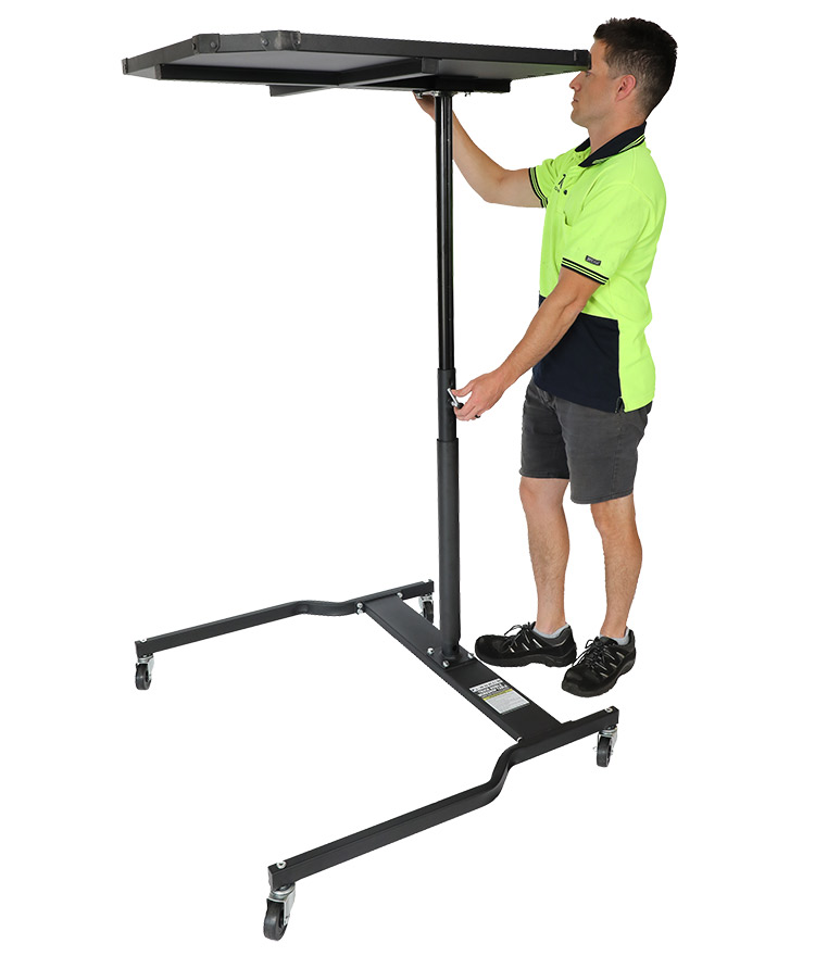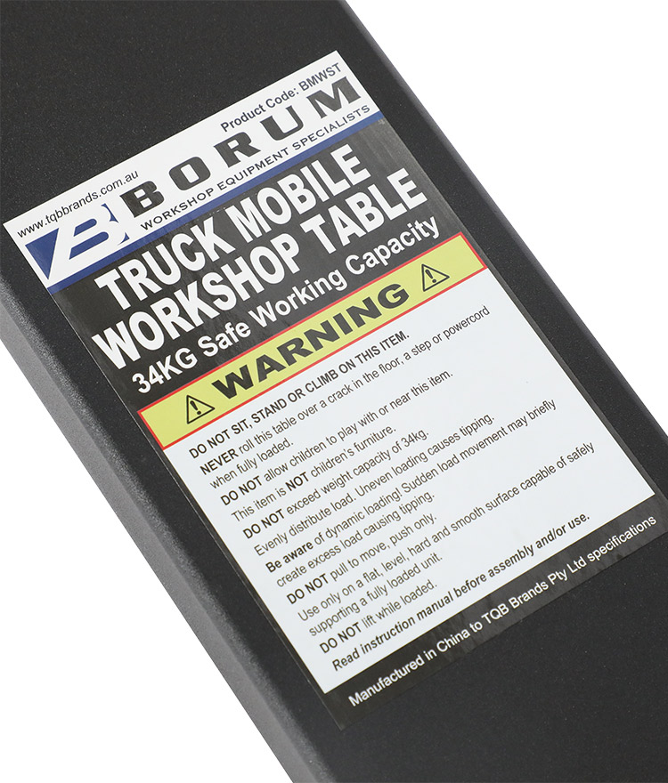 The Heavy Duty steel construction makes this Borum "Industrial Quality" Truck Mobile Workshop Table durable enough for moving tools and parts to and from the vehicle. Easily handles loads up to 34kg. Ball bearing castors ensure you can manoeuvre this mobile workshop table around the workshop. Including 2 compartments and 8 mounting holes, the height adjustment gives you plenty of options for larger vehicles and trucks. This very versatile truck mobile work top makes any installation or service work flow more efficiently for auto repairers and installation workshops