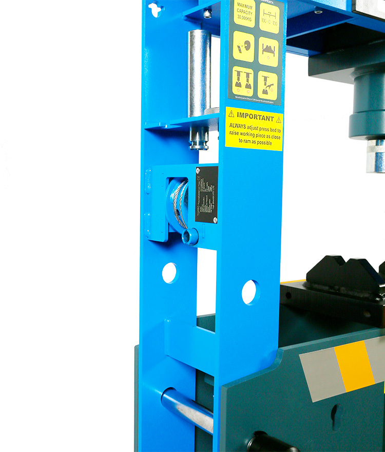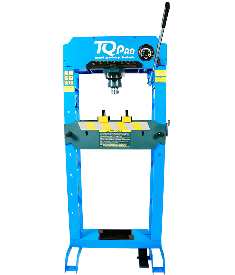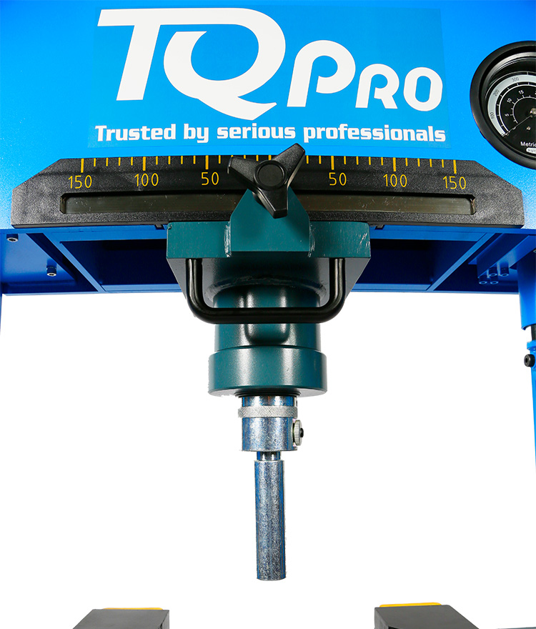 This TQ Pro "Latest Technologies" 30,000kg Air Hydraulic Workshop Press is capable of bending, pressing or extruding and makes light work of installing ball joints, U-joints and pulleys - making it ideal for many automotive and industrial applications. Polished inner cylinder walls extend the life of the hydraulic seals to minimise abrasion and wear, while the cylinder ram and pistons are also polished and chromed, guided by high performance seals, wear rings and dust seals. Includes a dial gauge for dual metric/tons pressure readings. The strong frames and powerful high-pressure hydraulics will provide years of dependable service in many applications. When components need to be removed or assembled, TQ Pro "Latest Technologies" hydraulic presses deliver the controlled power to safely remove and install bearings, gears, U-joints, bushings, ball joints and pulleys with precision and versatility! This 30,000kg Air Hydraulic Workshop Press features a fast-pump core that allows the pressure head assembly to lower and make contact with the work piece more quickly than the slow-pump core. The ram cylinder glides across the width of the upper frame allowing off-centre pressing.