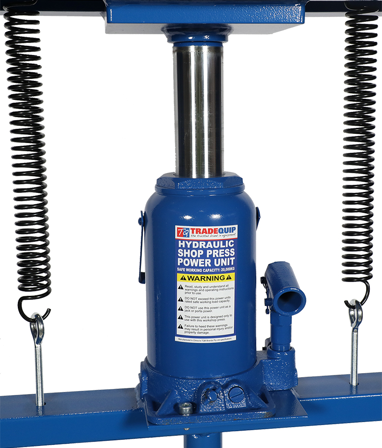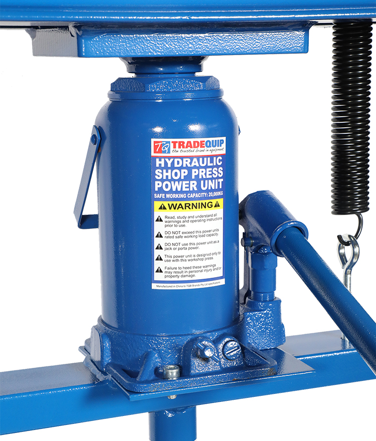 The TradeQuip "Made for the Trade" Hydraulic Workshop Press is great for straightening, stamping, bending and pressing any component that is hard to handle. The polished inner cylinder walls extend the life of the hydraulic seals to minimise abrasion and wear, while the cylinder ram and pistons are also polished and chromed, guided by high performance seals, wear rings and dust seals. It is ideal for a variety of workshop applications and in particular suited to agricultural or industrial use. Jobs such as straightening, ending, folding, punching, removing bolts and bearings etc, are some of the tasks that can be easily accomplished.